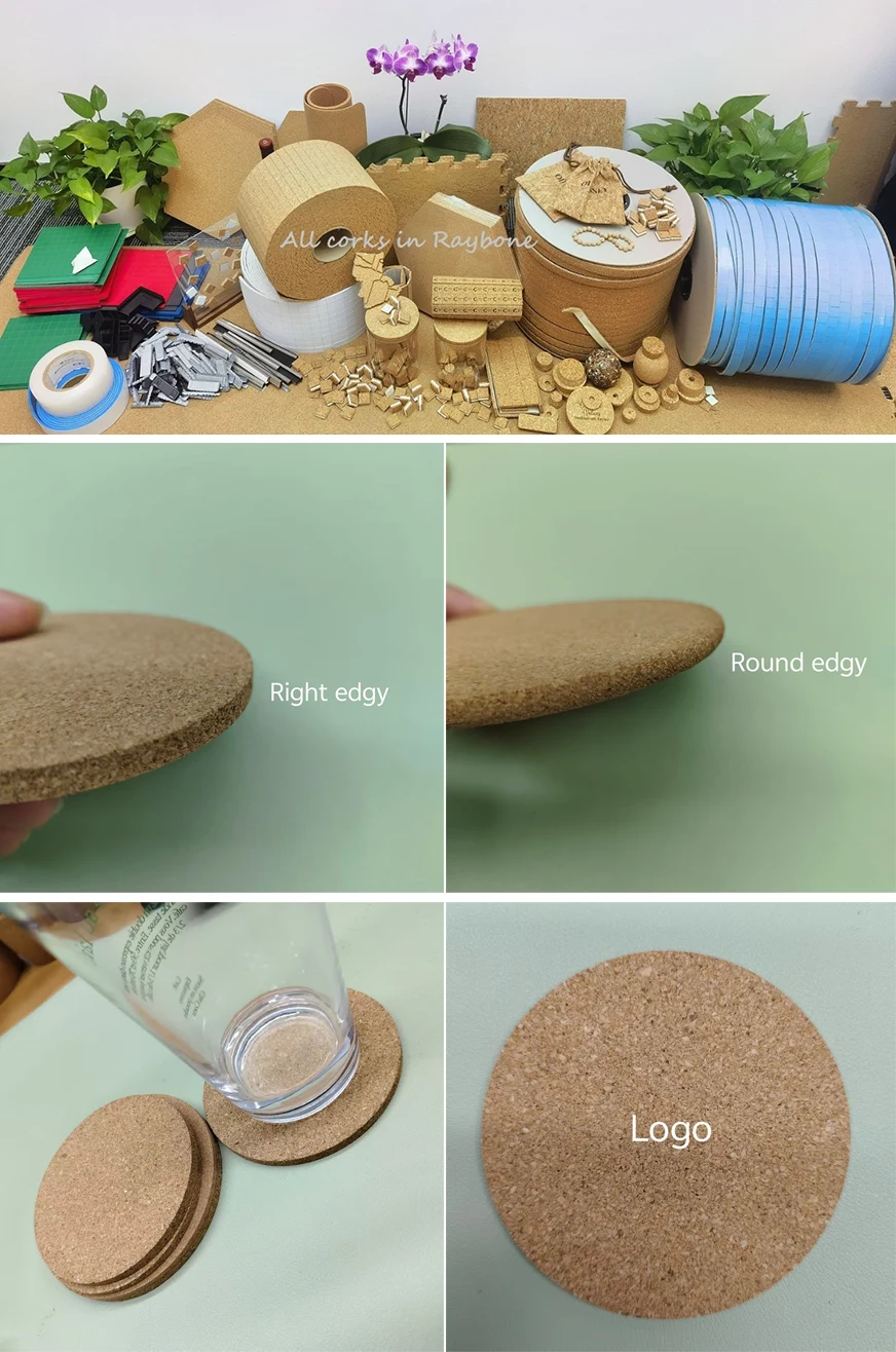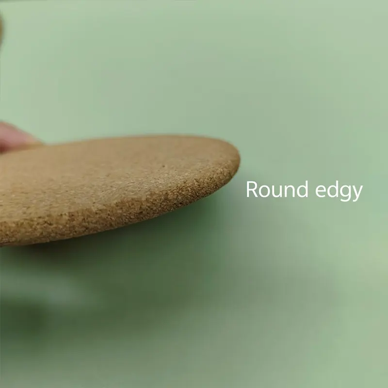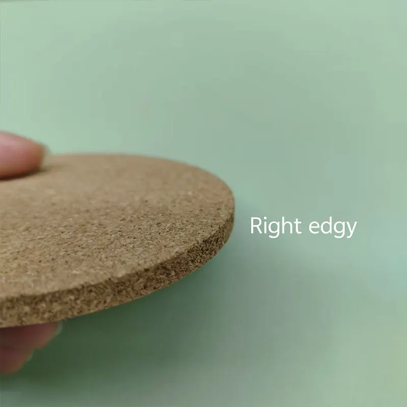 Ada juga detail kecil untuk edgy cork coaster, dua jenis edgy biasanya, round edgy dan right edgy. Round edgy memiliki lebih banyak langkah pemrosesan karena perlu dipoles, juga biaya lebih tinggi, namun terlihat lebih halus, beri tahu kami efek apa yang Anda inginkan!